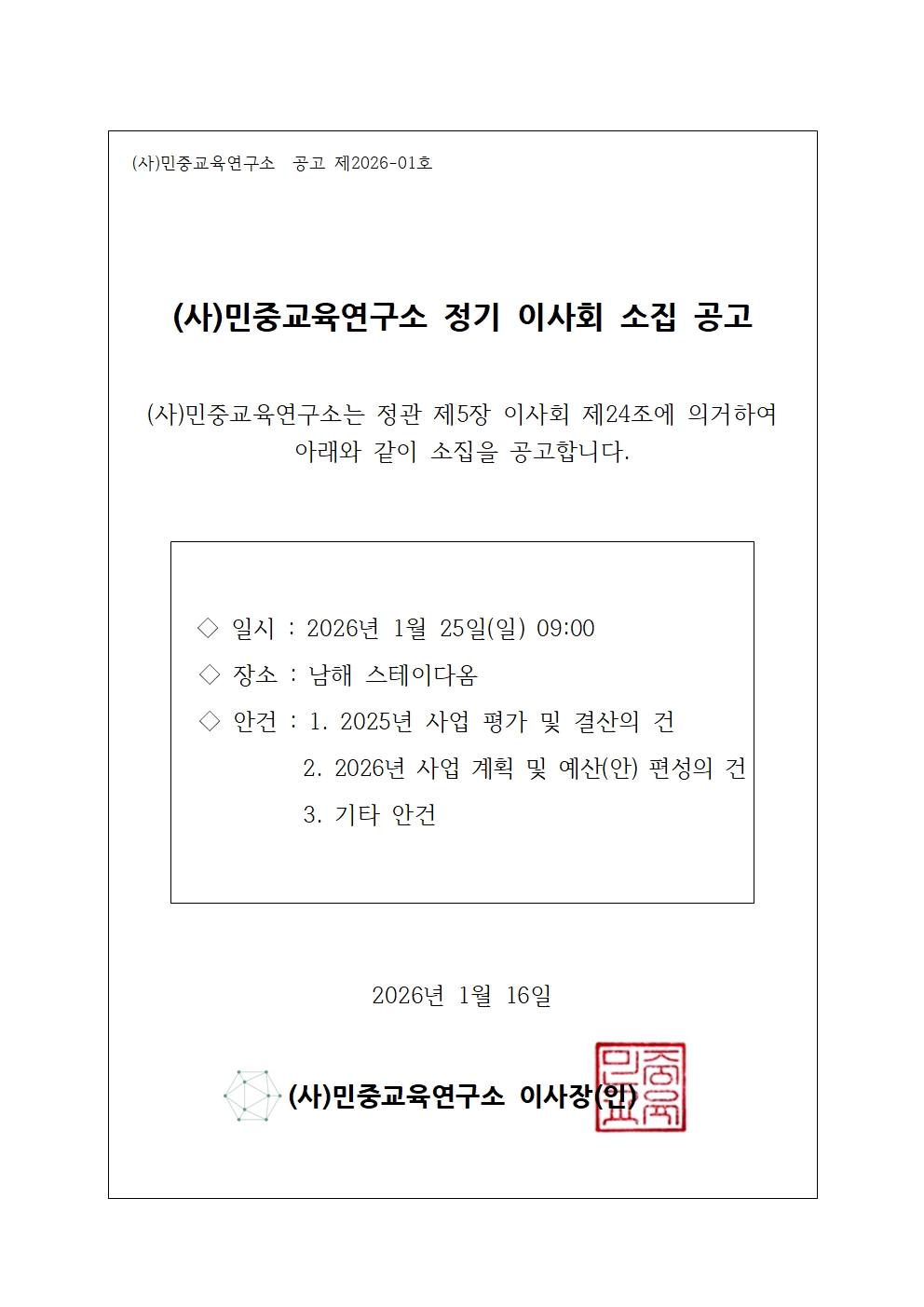 2026³â Á¤±â ÀÌ»çȸ ¼ÒÁý °ø°í