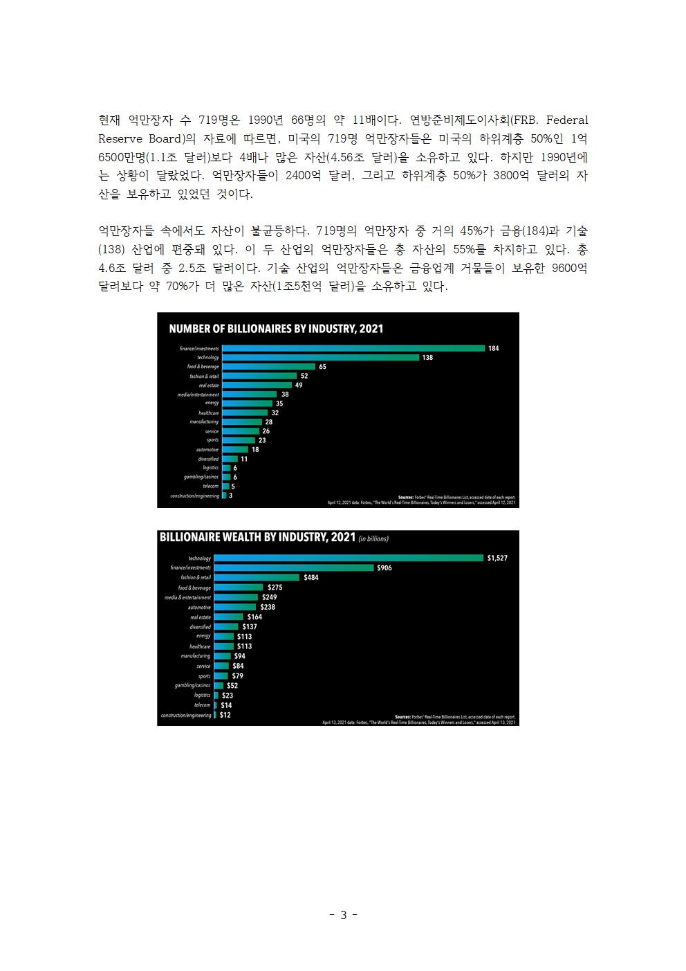 º¸°í¼ÀÇ ³»¿ëÀÌ ¸Å¿ì ³î¶ø°í Ãæ°ÝÀûÀÔ´Ï´Ù. ¹Ì±¹ ¾ï¸¸ÀåÀÚµéÀÇ ÀÚ»êÀÌ 1990³â 2400¾ï ´Þ·¯¿¡¼ 2021³â 4Á¶5600¾ï ´Þ·¯·Î 31³â µ¿¾È 19¹è³ª ¾öû³ª°Ô Áõ°¡Çߴµ¥, ÀÌ ±â°£¿¡ Áõ°¡ÇÑ ÀÚ»ê 4Á¶3000¾ï ´Þ·¯ Áß¿¡¼ 1/3 ÀÌ»óÀÌ ÃÖ±Ù 13°³¿ùÀÇ Äڷγª19 »çÅ ½Ã±â¿¡ Æø¹ßÀûÀ¸·Î Áõ°¡Çß´Ù´Â °ÍÀÔ´Ï´Ù. ±×·±µ¥ ÀÌ 13°³¿ù µ¿¾È 3000¸¸ ¸í ÀÌ»óÀÇ ¹Ì±¹ÀÎÀÌ Äڷγª19¿¡ °É·È°í 56¸¸ ¸í ÀÌ»óÀÌ »ç¸ÁÇßÀ¸¸ç ¾à 7700¸¸ ¸íÀÌ ÀÏÀÚ¸®¸¦ ÀÒ¾ú½À´Ï´Ù.