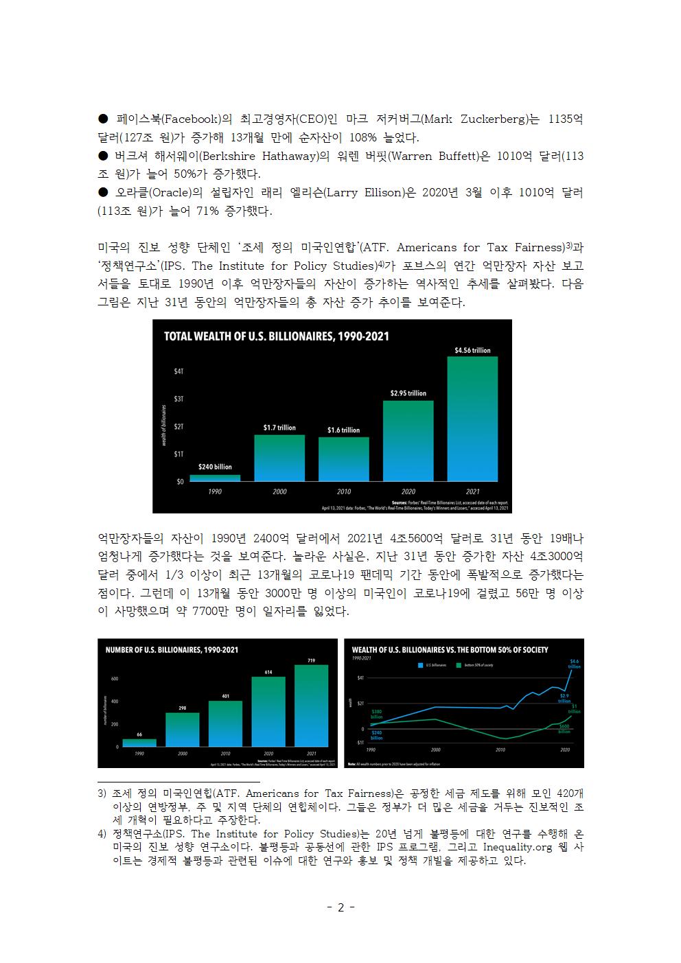 Áö³ÁÖ 15ÀÏ(¹Ì±¹ ½Ã°£)¿¡ ¹Ì±¹ÀÇ Áøº¸ ¼ºÇâ ´ÜüÀÎ ¡®Á¶¼¼ Á¤ÀÇ ¹Ì±¹Àο¬ÇÕ¡¯(ATF. Americans for Tax Fairness)°ú ¡®Á¤Ã¥¿¬±¸¼Ò¡¯(IPS. The Institute for Policy Studies)°¡ °øµ¿º¸°í¼¸¦ ¹ßÇ¥Çß½À´Ï´Ù.